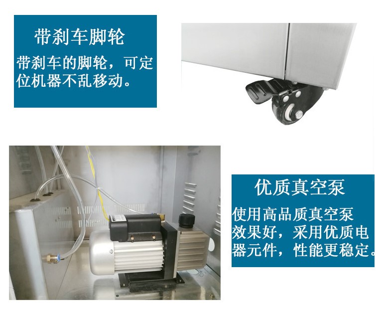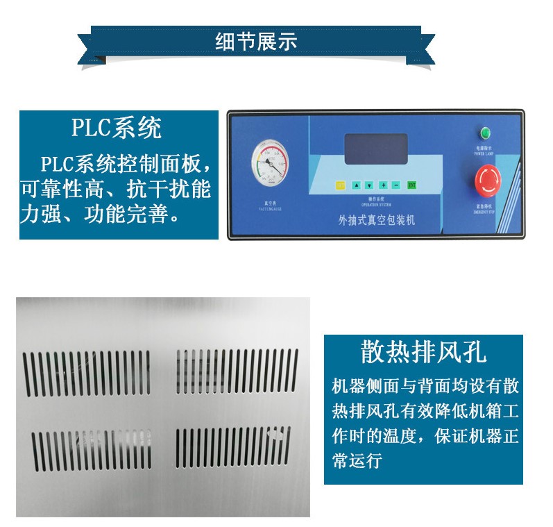 電源 220/50HZ 電機(jī)功率 0.36KW 熱封功率 0.95KW 抽氣速率 6.5m³/h 充氣速率