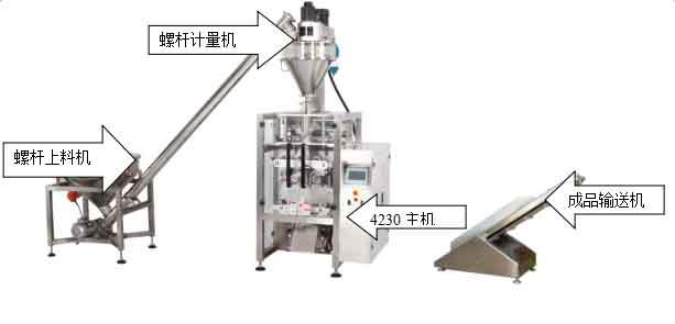 與螺桿計(jì)量機(jī)組合,可以包裝粉劑類的各種產(chǎn)品。如:面粉、生粉、豆粉、奶粉、葡萄糖粉、冰淇淋粉、胡椒粉、魚(yú)飼料粉、咖喱粉、可可粉、洗衣粉、堿粉、有機(jī)化肥等。