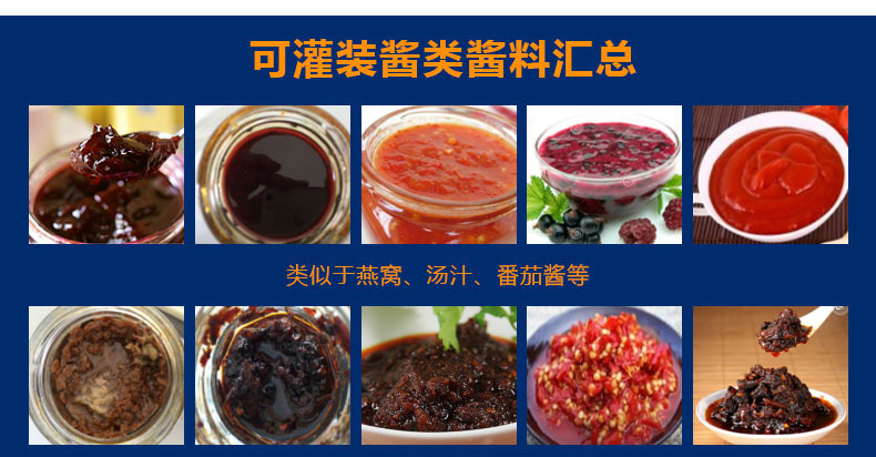 適用范圍:小型辣椒醬灌裝機(jī)主要適用于那些含顆粒的顆粒漿狀流體、半流體、膏體、醬狀類的物料灌裝,各種勻質(zhì)醬料、火鍋底料、老干媽辣椒醬、干煸牛肉醬、泡椒、牛肉粒醬、香菇丁醬、八寶菜、蘿卜丁、含干煸臘肉丁、辣子雞丁、油炸花生等大顆粒、含油量少等干煸辣椒醬的灌裝。